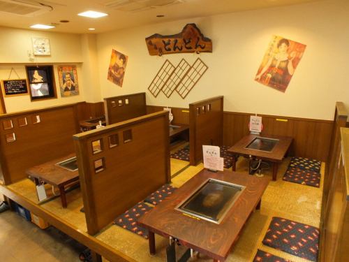 【お座敷席:5×3】当店のお座敷席は5名様用が3卓あり、会社仲間とのサク飲みや宴会、歓送迎会などに最適です♪ゆったりとしたスペースで、楽しい時間をお過ごしいただけます。絶品のお好み焼きやもんじゃとお酒を、心ゆくまでご堪能くださいませ!